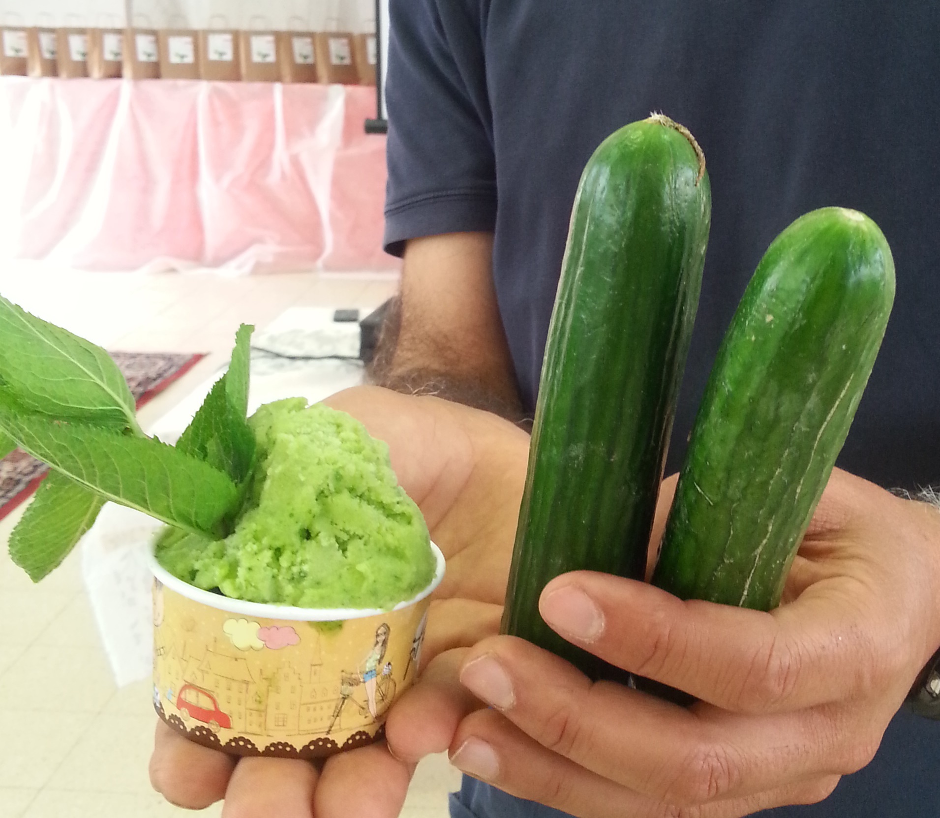 גלידת סורבה מלפפון, שיתוף פעולה ייחודי בין חקלאי מושב אחיטוב ליצרנית הגלידות ד"ר לק. רק 30 קלוריות לכדור גלידה שמתאים גם לטבעוניים מאחר ואינו מכיל רכיבים מן החי.