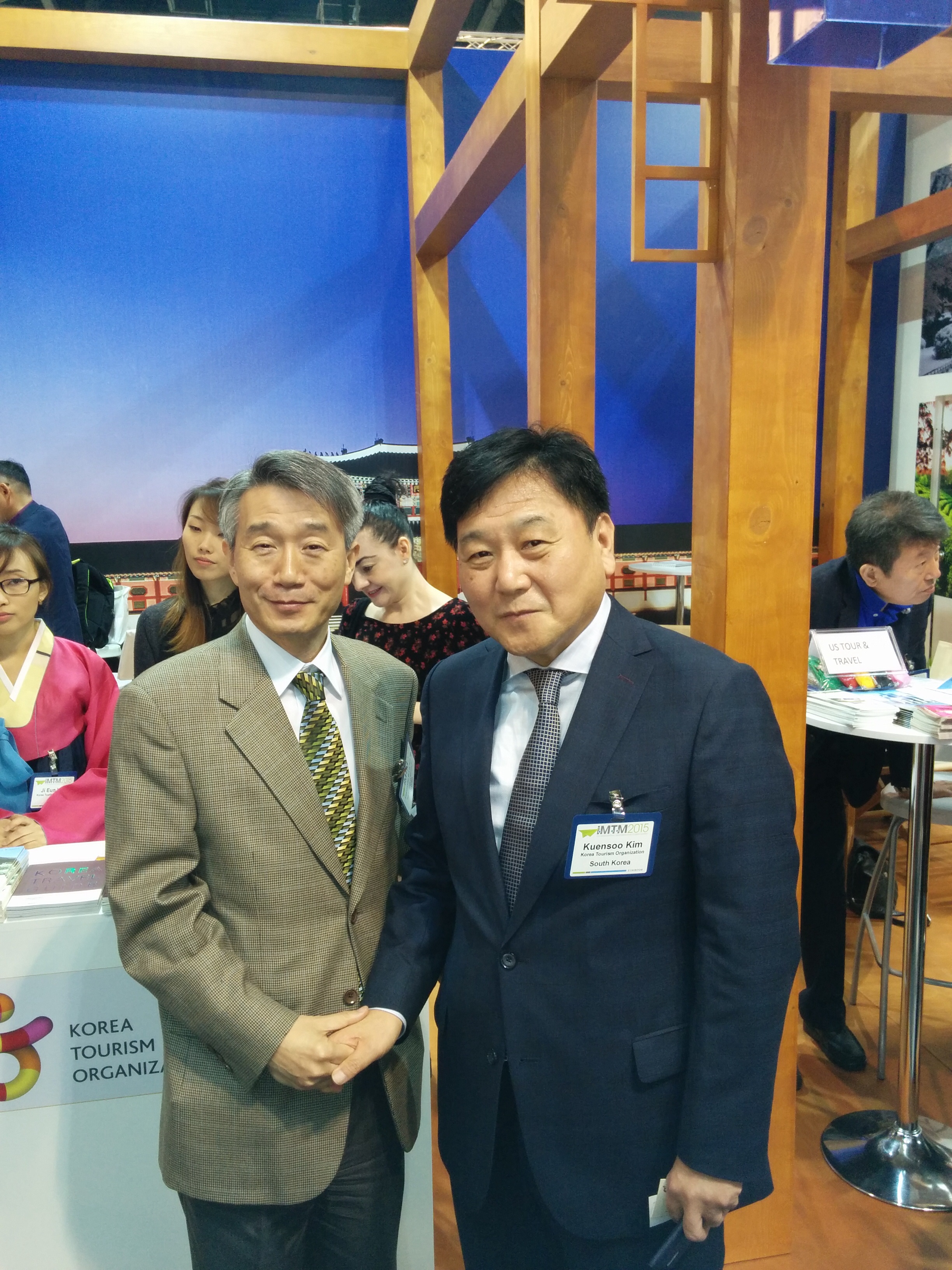 המנכ"ל האזורי של רשות התיירות הקוריאנית, קים קיון-סו (מימין) עם שגריר קוריאה בישראל, לי גן-טה. תמונה 2010.