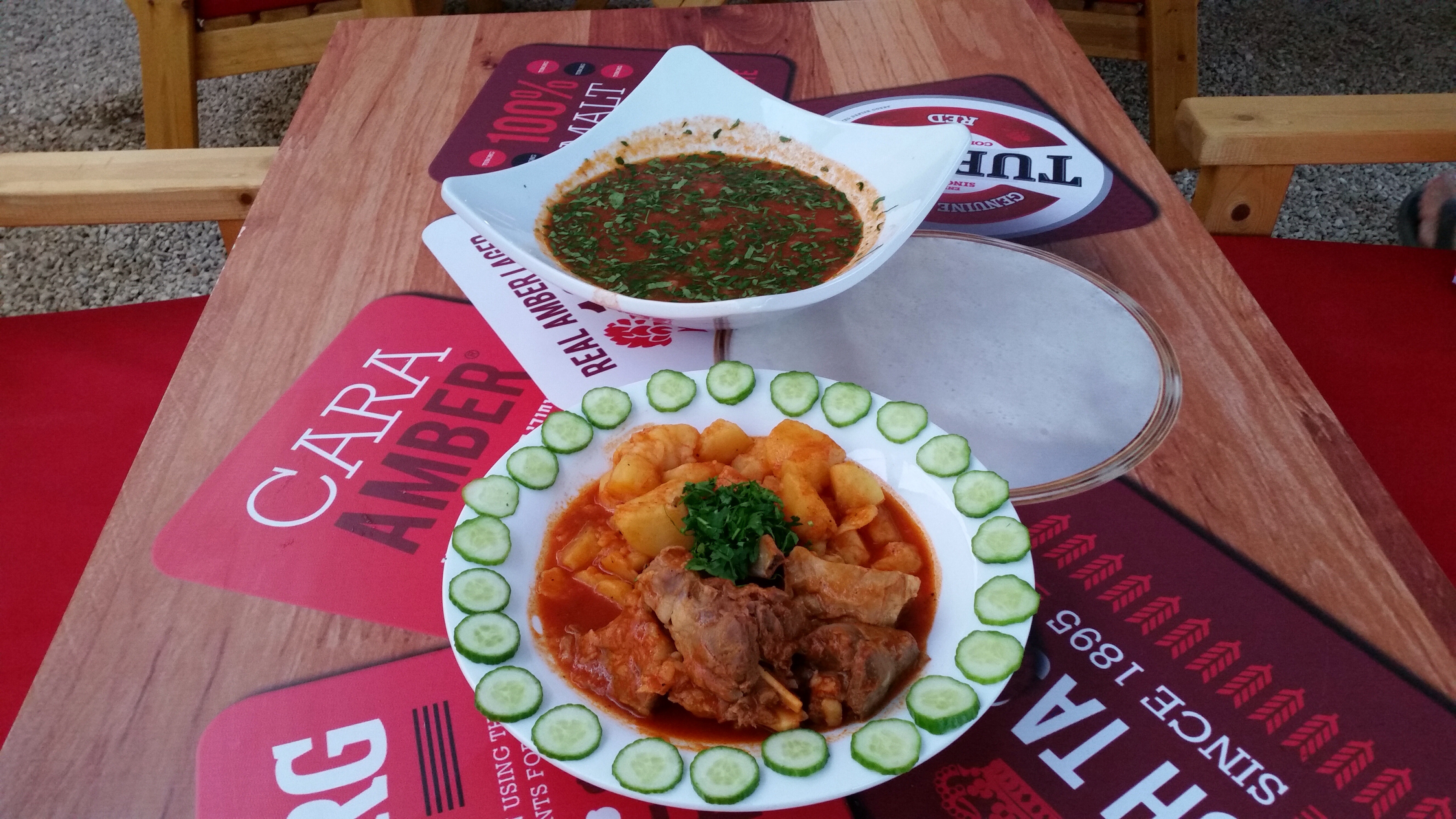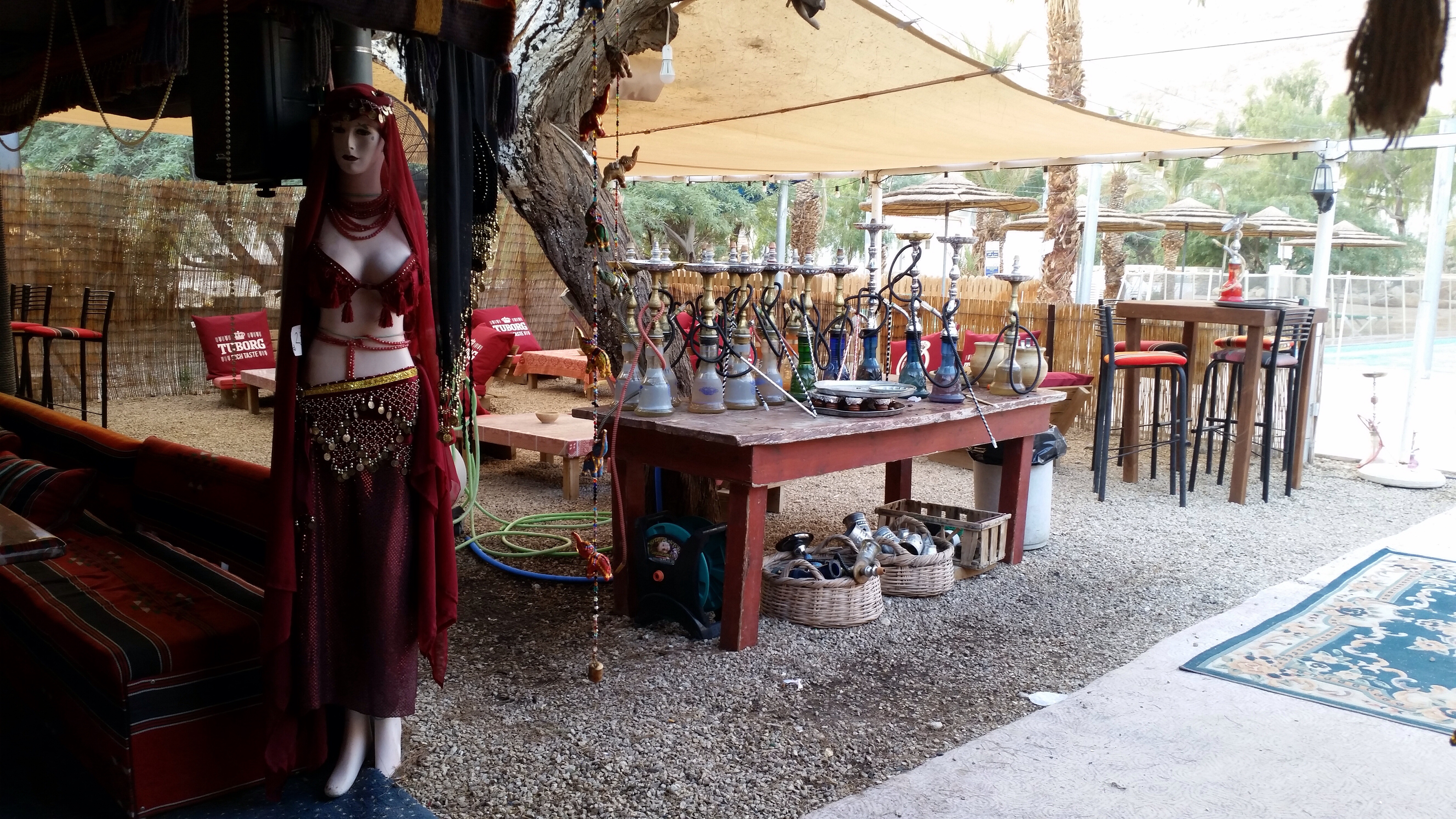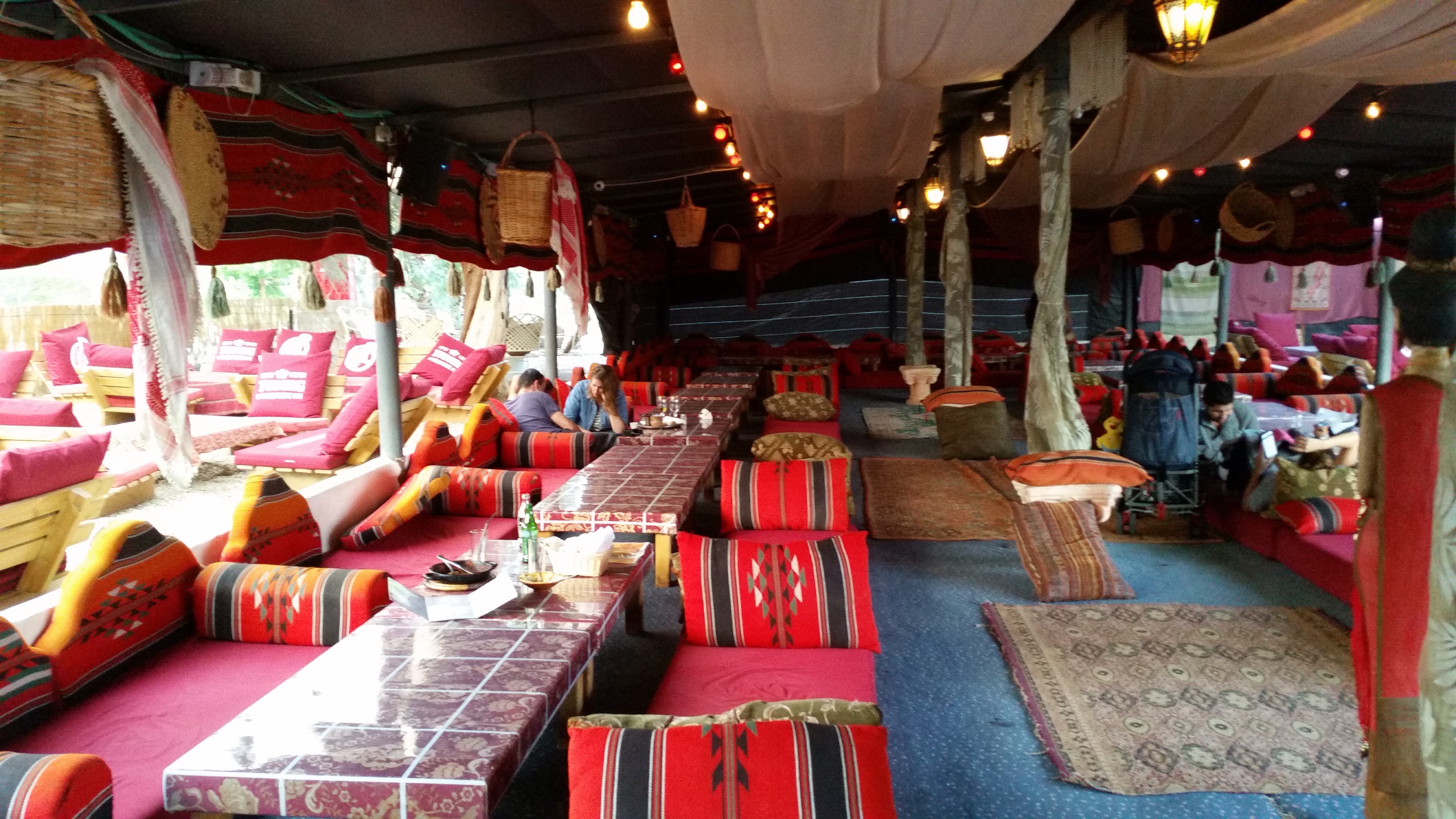 בהגיענו למסעדה קיבלו את פנינו יוסי ושרון שהם בעלי המסעדה, אנשים בעלי חזון, שהם באמת סיפור הצלחה. שרון בחורה תימניה מקסימה שהגיע משוודיה וביחד הגו את הרעיון, להקים את המאהל ששוכן בין מלון ישרוטל גנים לבין מלון לאונרדו אין. צמוד למסעדה יש בריכת שחיה מדהימה וגם בריכת ילדים למי שמגיע בשעות היום יכול להנות גם מהאוכל המשובח וגם מהבריכות או לסרוגין, להנות מנרגילה בשעות הערביים. השילוב המעניין של המאהל עם הבריכות והבר שמשמש כמקום בילוי עושה את המקום לאטרקטיבי שונה ומיוחד.