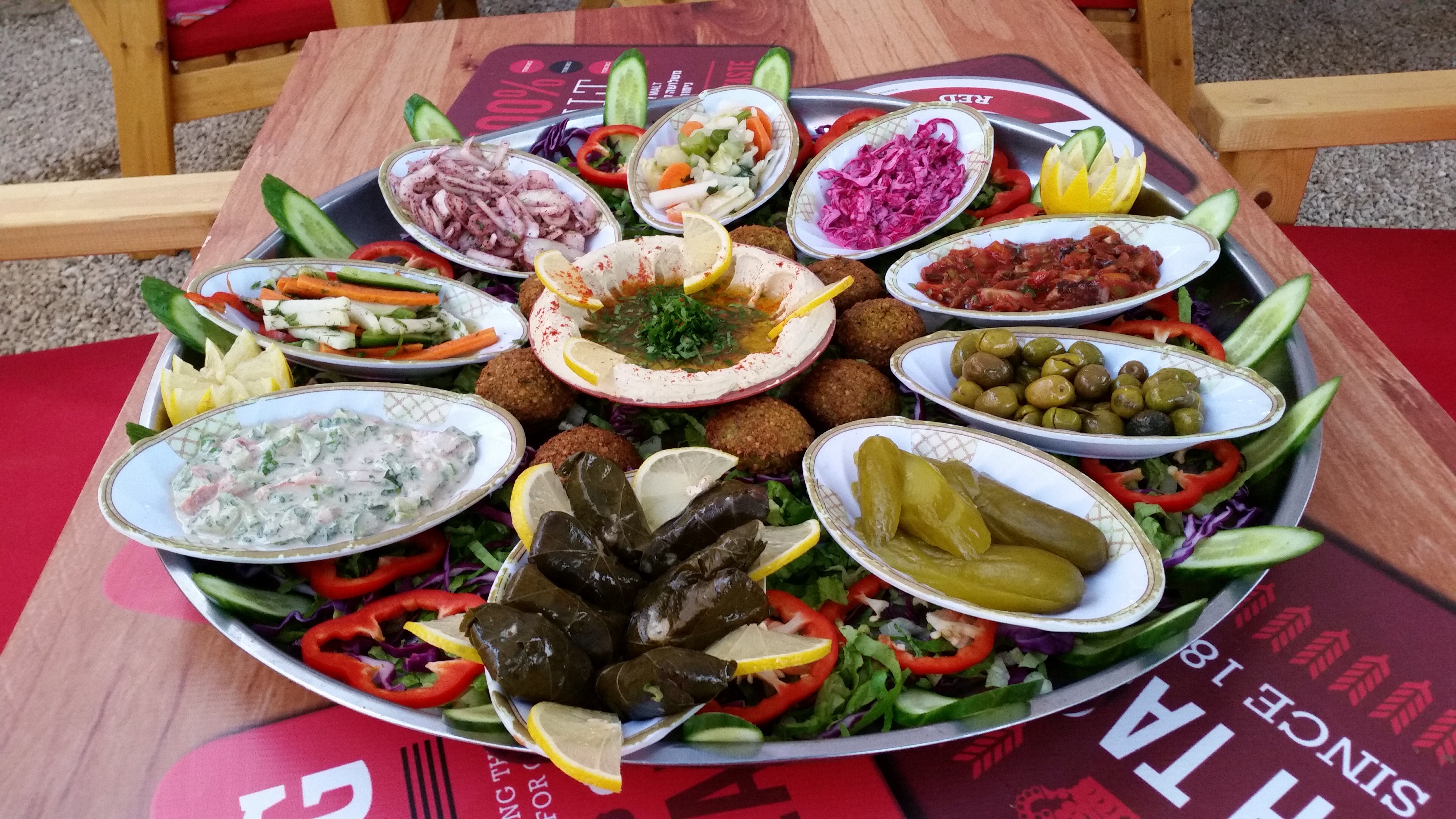 סמי השף פינק אותנו בפלטת סלטים ענקית שכוללת צלחת חומוס ושמן זית עם לימון, סלט מדבוחה מדהים עם שום ופלפלים, טחינה עם עגבניות, חמוצי הבית, סלט כרוב חמצמץ משגע מלווה בפיתות חמות וטעימות. קערה של תבשיל מיוחד וריחני של כבש בתנור עם תפוחי אדמה ברוטב אדום עם נגיעות של הל טעם גן עדן שנמס בפה. סלט ערבי רענן קצוץ במקום, מתובל בשמן זית ולימון טרי. ושפודי פרגיות בגריל, ברח וטעם של עוד.