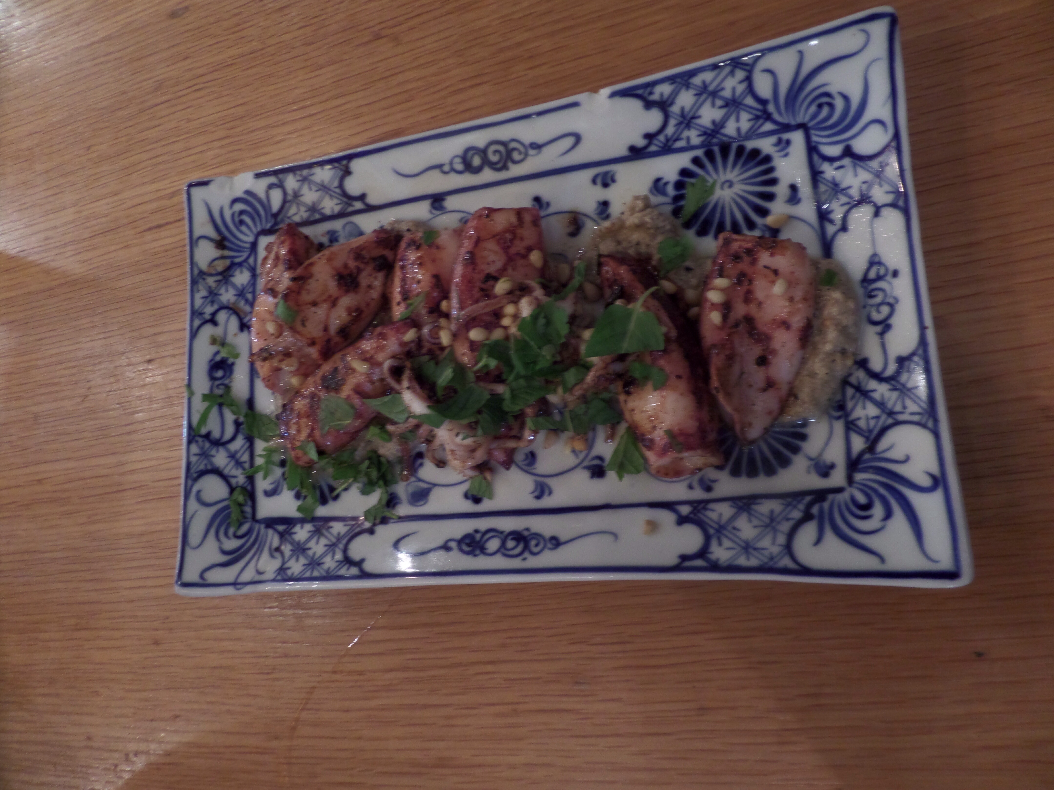 עשוי בגריל בתיבול פיקנטי, שמונח בחינניות על מצע של קרם חצילים. הצבע האדום, משרה למנה מראה חושני שפותח לסועד את חוש הטעם והריח. יש לציין, שהמנה טעימה, טריה ובהחלט מומלצת בחום.