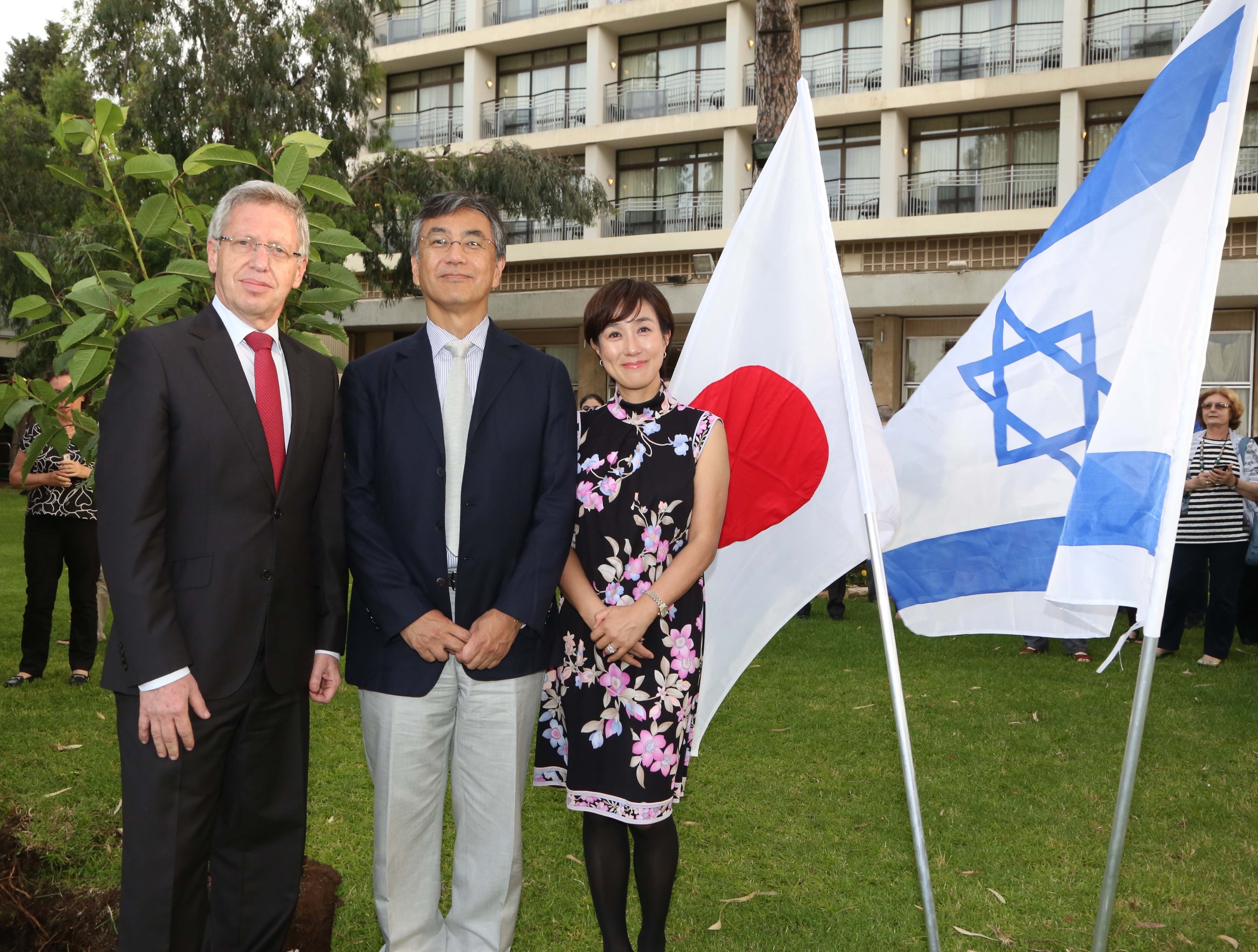 קאורי ושיגאו מאטסוטומי, שגריר יפן בישראל יחד עם עדי מאור, מנכ"ל מלונות דן בחיפה.