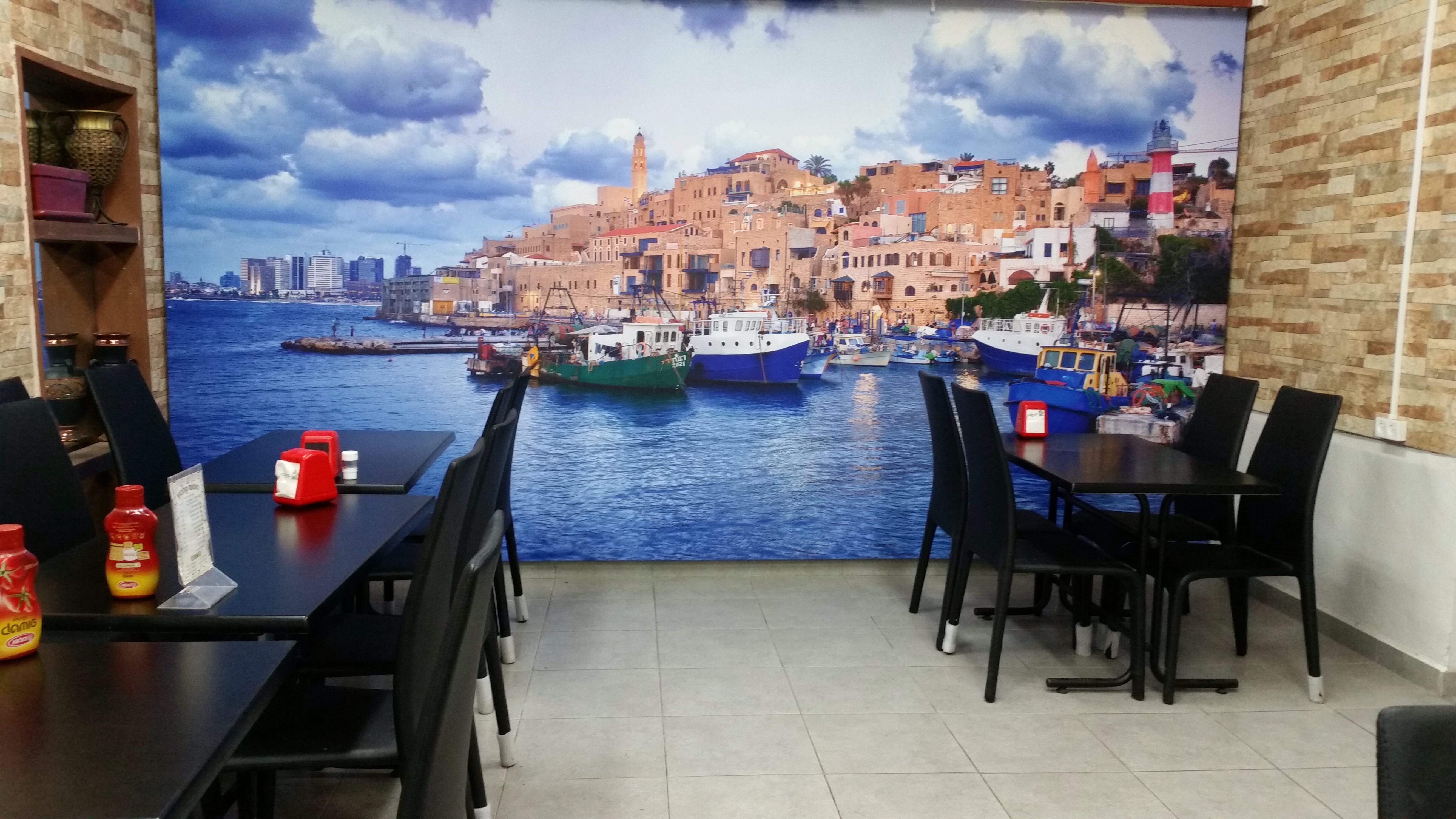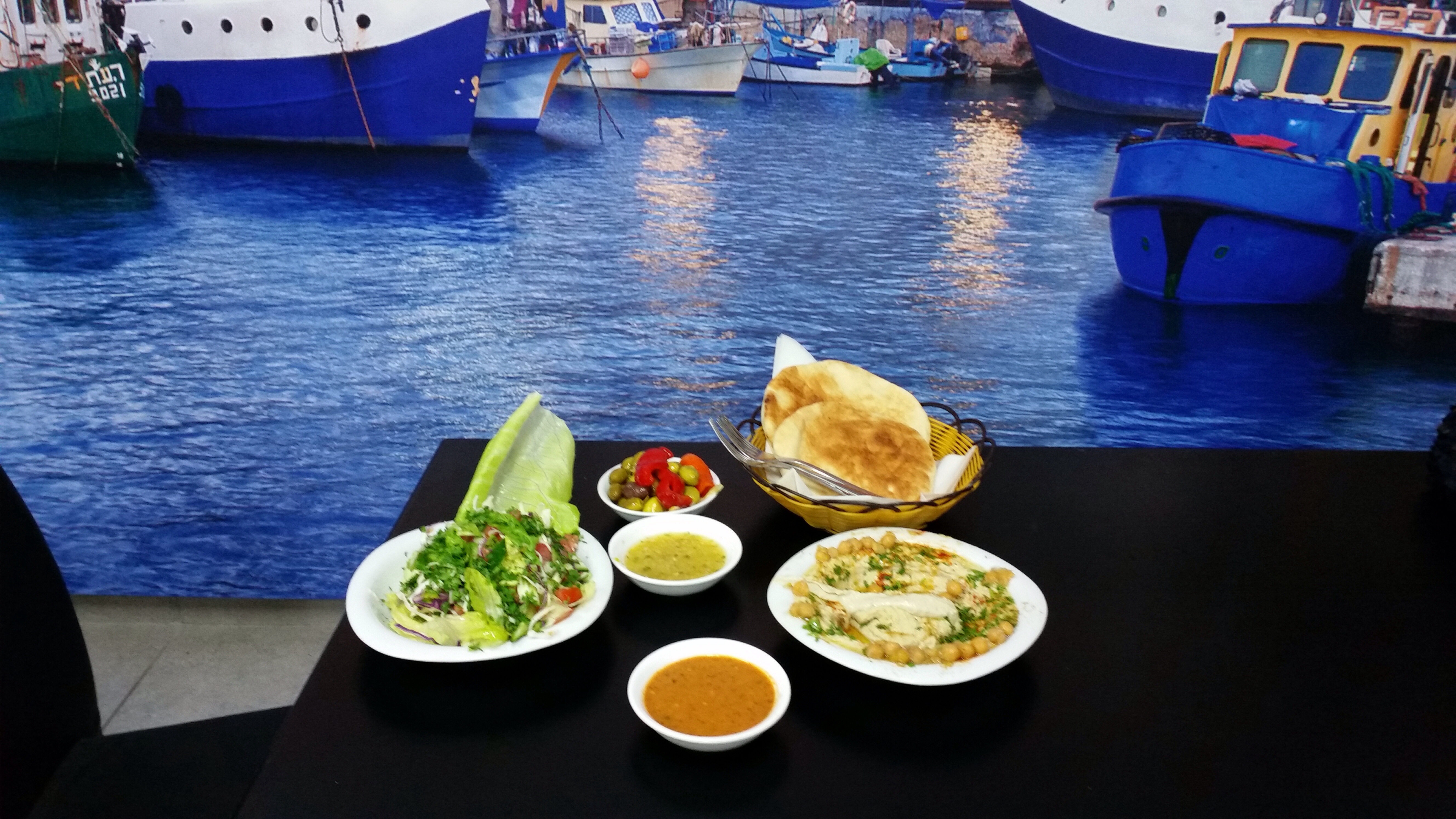 בהגיענו למסעדה קיבל את פנינו אהרון עדי בעל המסעדה בחמימות ומיד הציע לנו שולחן שמשקיף למעגן הסירות. היות והיתה שעת ערביים הספקנו גם להנות משקיעה מדהימה, שהוסיפה לאווירה ולתאבון כמובן.