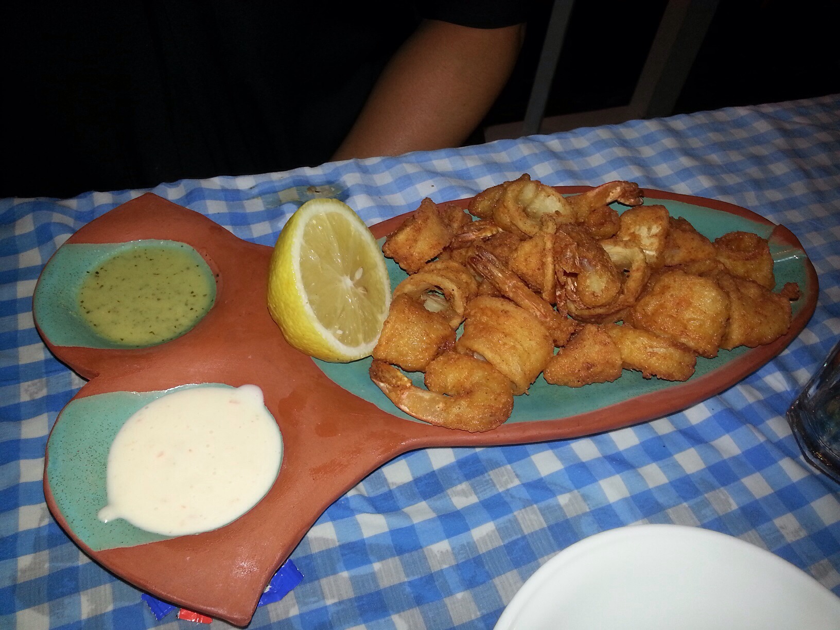 מה אפשר לבקש יותר? האמת שלא בקשנו אבל קיבלנו אהרון החליט לפנק אותנו במנת קלאמרי טמפורה ברוטב צ׳ילי מתוק. מנה באמת מיוחדת גם בטעם וגם במראה.