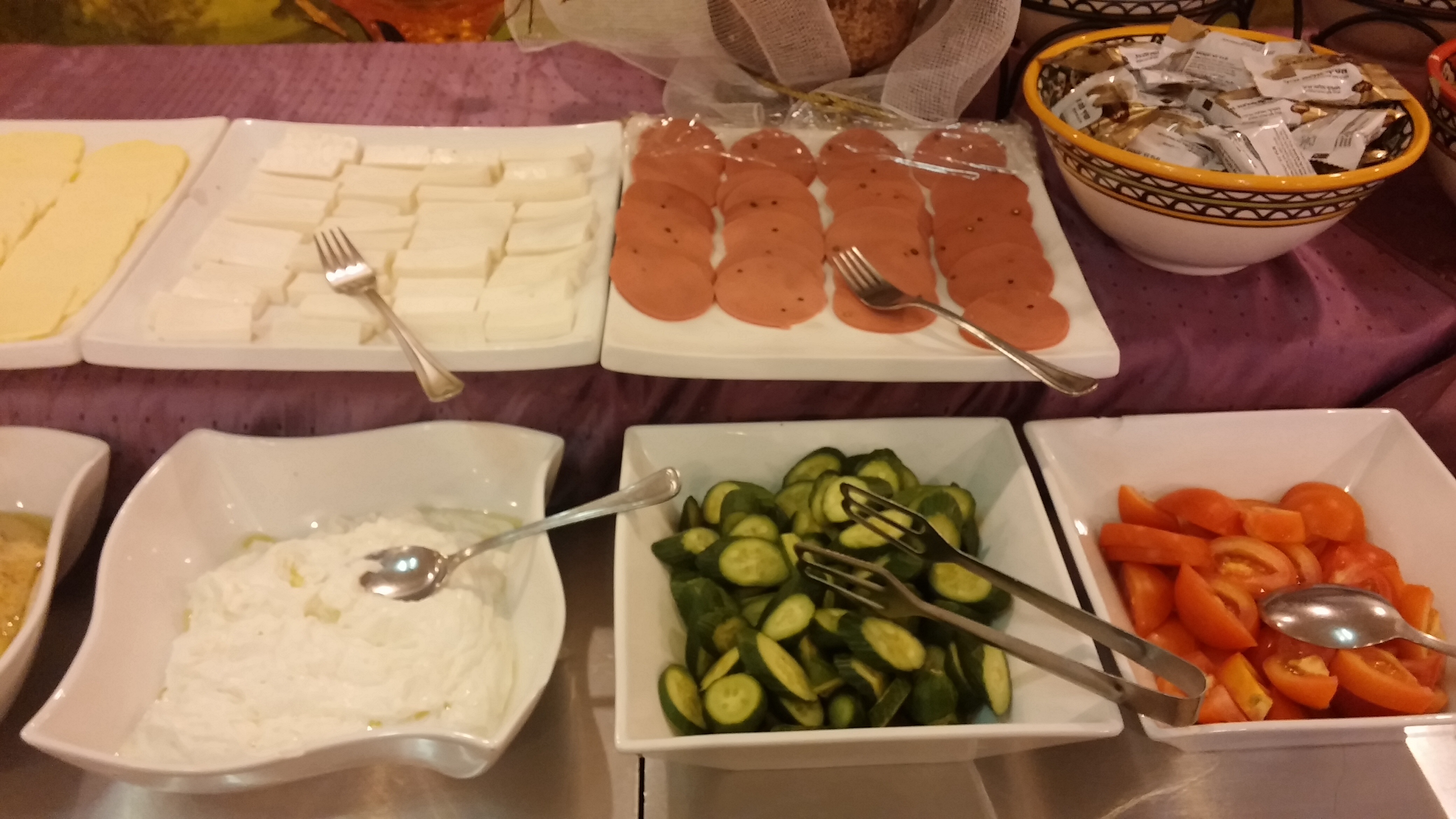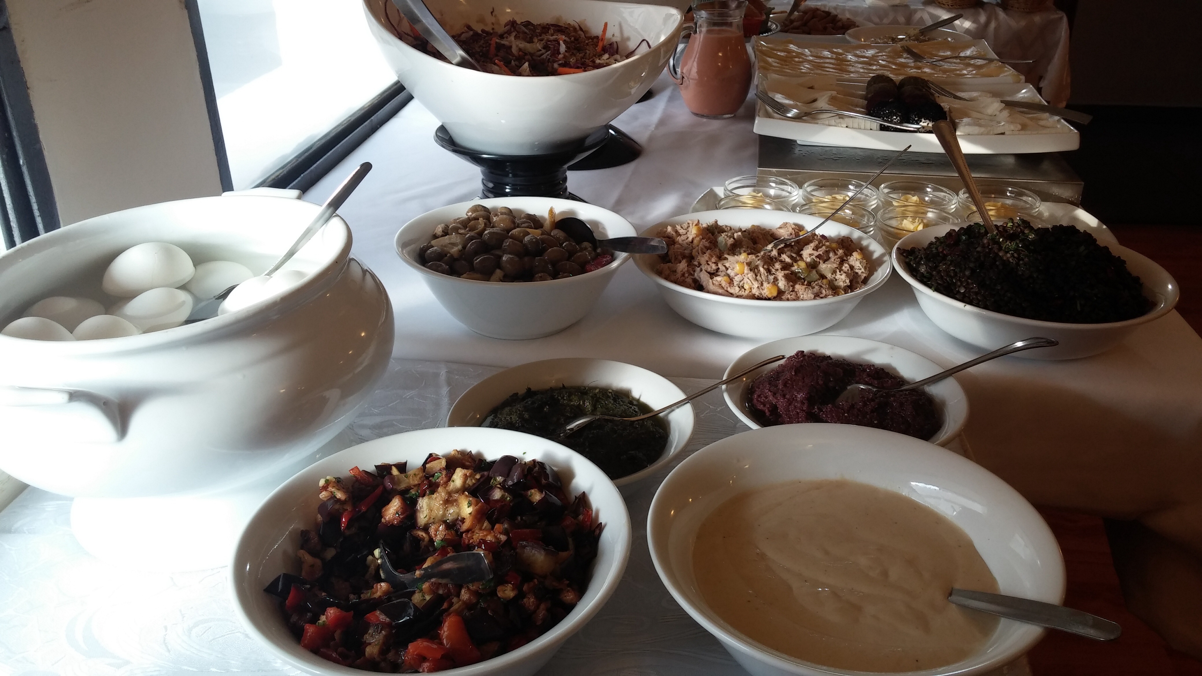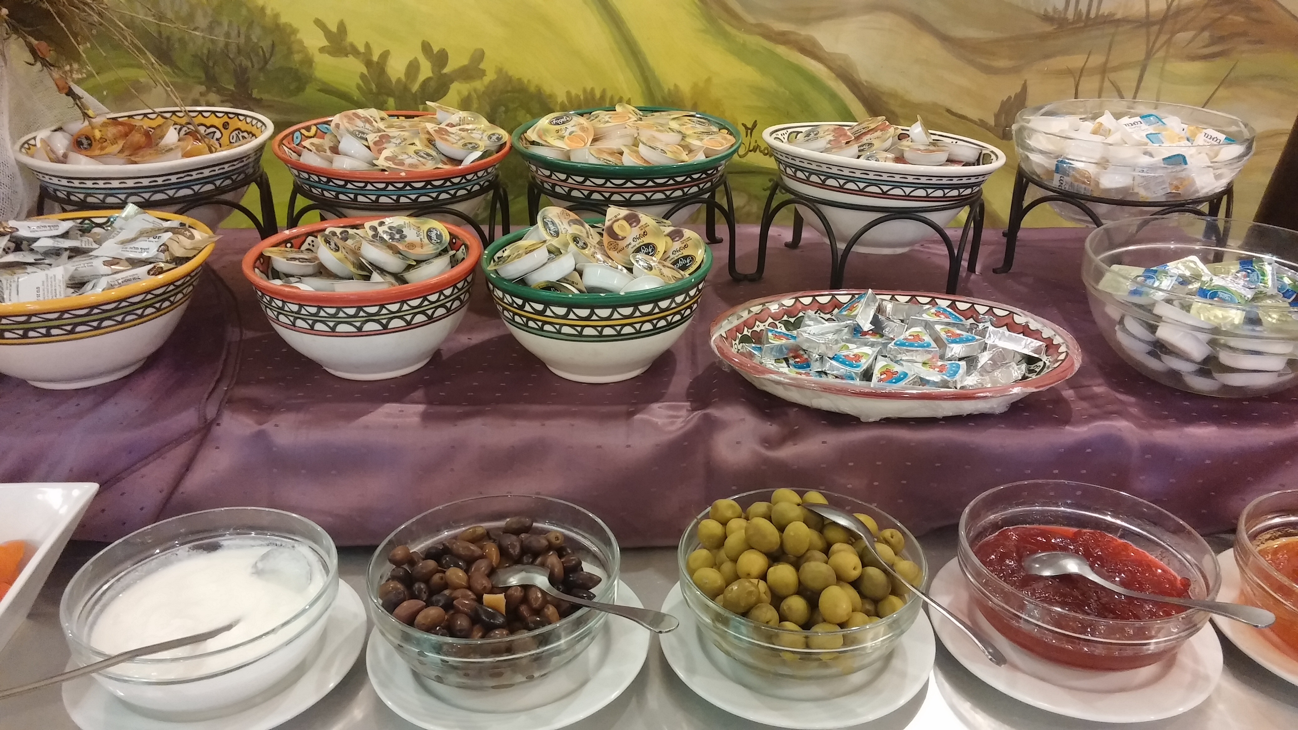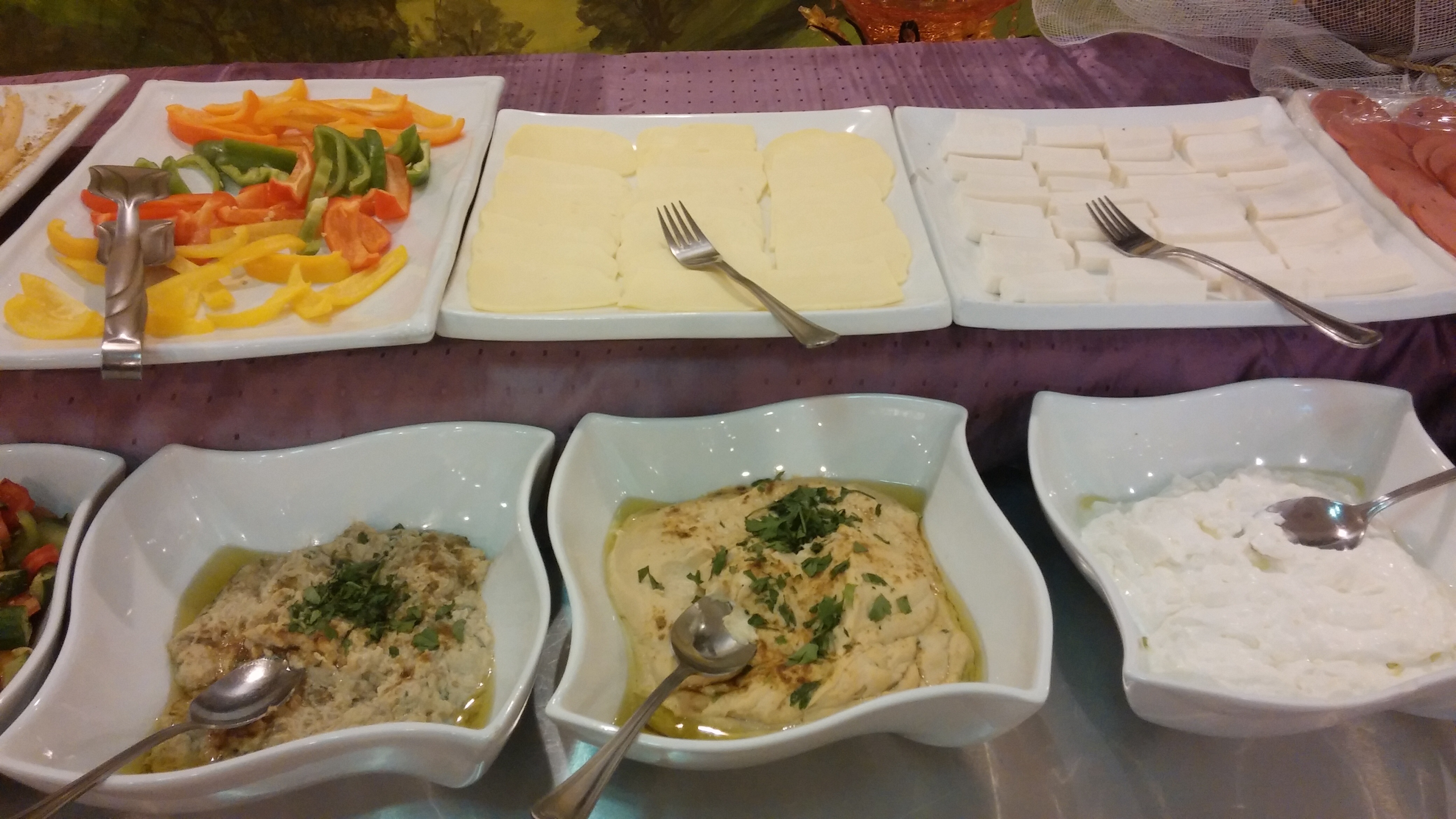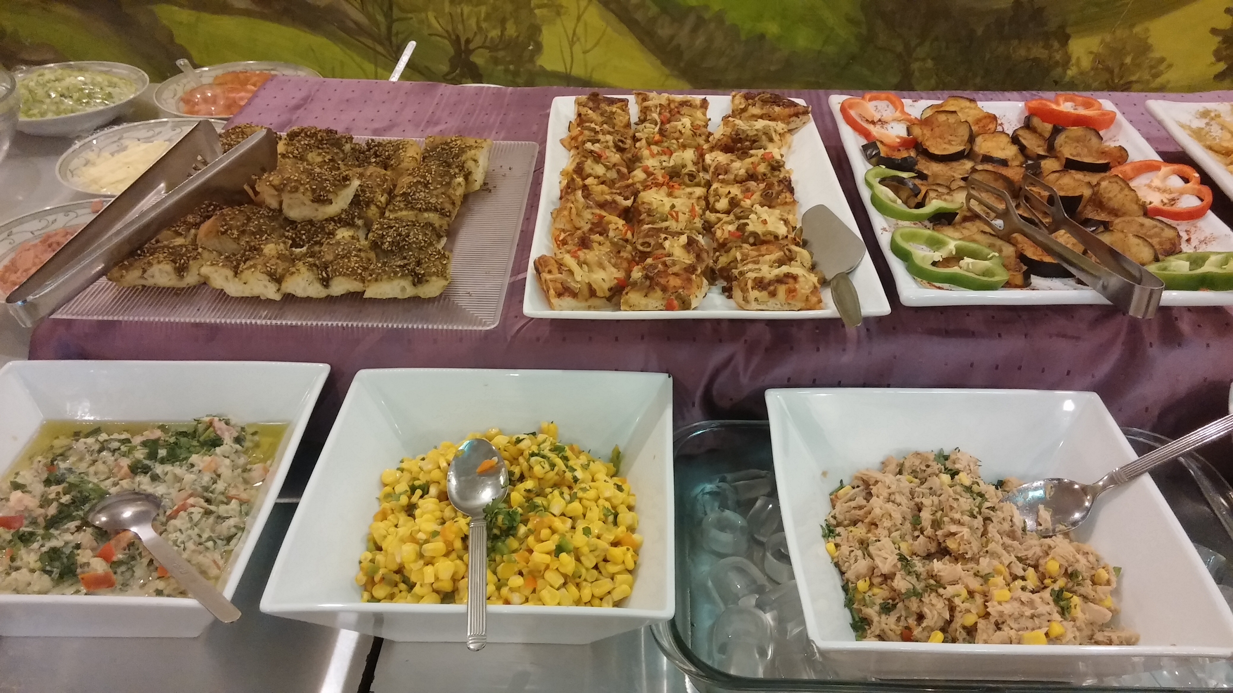 התפריט עשיר וכולל מזטים, גבינות למיניהן, קרם חצילים טעים, איקרה ושאר סלטים שמוגשים בצלוחיות לצד ביגלה חם ומזמין.