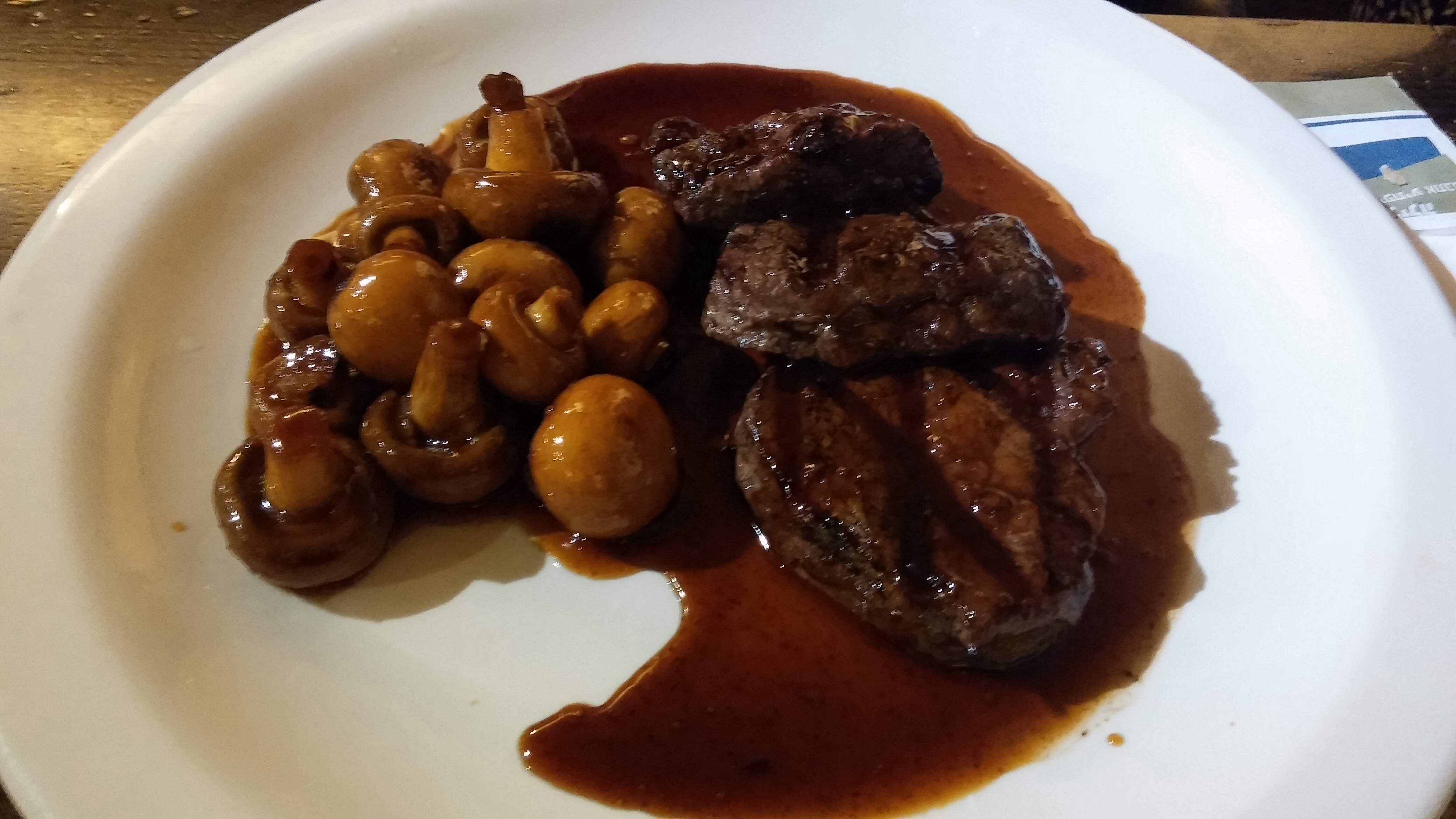 והדובדבן שבקצפת מנת מדליוני סטייק פילה עם פטריות פורטובלו מקורמלות אכן מנה יפת מראה וטעימה מאוד.